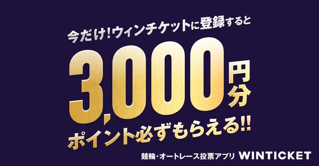 この度、WINTICKETでは「今だけ!3,000ptが必ずもらえる新規登録キャンペーン」を実施することをお知らせします。