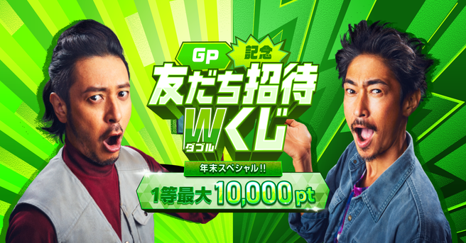 ぜひこのお得な機会に友だちを招待して、招待くじ1等10,000ptと的中ボーナス250ptゲットを狙いましょう!