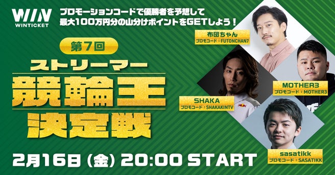 なお、【第7回ストリーマー競輪王決定戦】に合わせて、出演者の中から優勝者を予想する視聴者参加型企画も開催いたします。