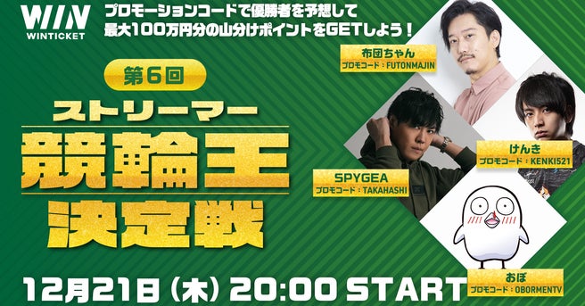 なお、【第6回ストリーマー競輪王決定戦】に合わせて、出演者の中から優勝者を予想する視聴者参加型企画も開催いたします。