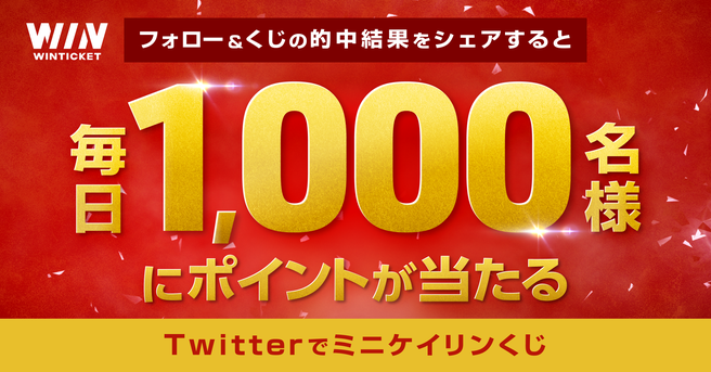 復活祭を記念して、11月1日(火)〜3日(祝・木)のキャンペーン期間中、下記条件を満たし、くじの的中結果をシェアされた方の中から抽選で毎日1,000名様にWINTICKETポイントが当たります。