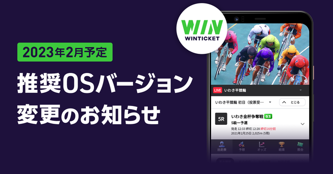 推奨バージョン変更後はWINTICKETアプリの最新版にアップデートできなくなるため、新しくリリースされる新機能などをご利用いただくことができなくなります。