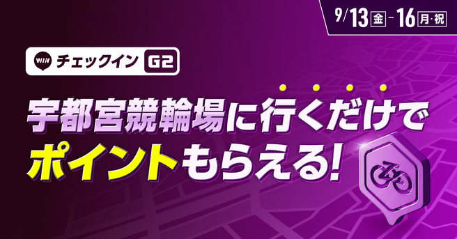 宇都宮競輪場に行くだけでポイントがもらえる!チェックインイベント開催!