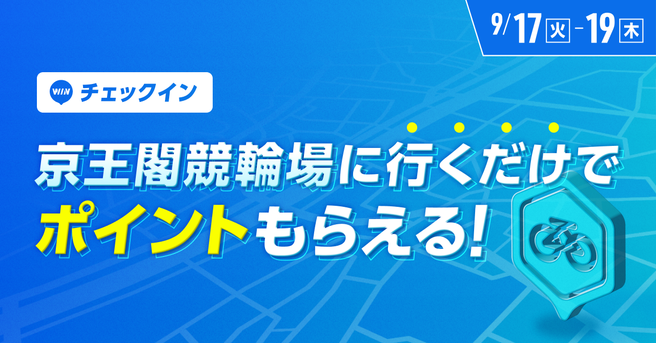 イベント開催中、WINTICKETアプリのチェックイン機能を京王閣競輪場でご利用いただいたお客様に、1日あたり1,000ptをプレゼントします。