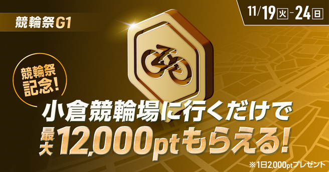 この度、2024年11月19日(火)より小倉競輪場に行くだけでポイントがもらえる!チェックインイベントを実施します。