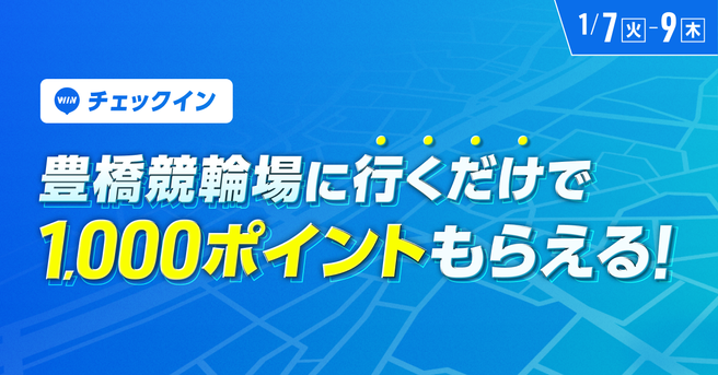 2025年1月7日(火)〜 2025年1月9日(木)の期間中、F2レースが開催される豊橋競輪場におきまして、競輪場チェックインイベントを実施することをお知らせします。
