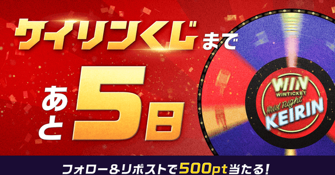 【500pt当たる!】ケイリンくじ復活カウントダウンXリポストキャンペーン
