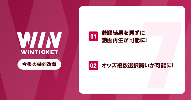 今月は「着順結果を見る前にダイジェスト動画を見る機能」など、より快適にWINTICKETをご利用いただけるよう機能のリリースを予定しております。ぜひご期待ください。