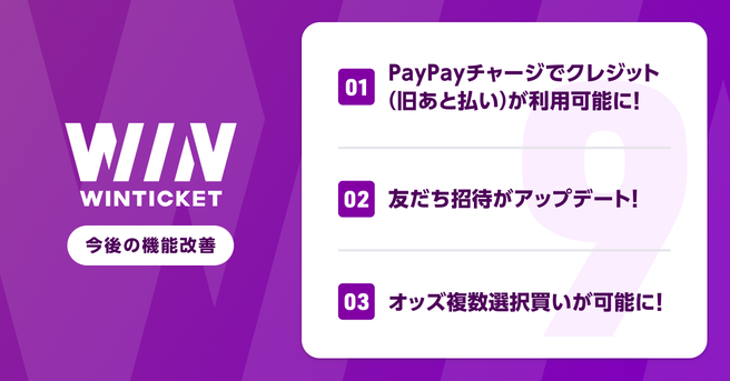 今月は「友だち招待くじのアップデート」など、よりWINTICKETをお楽しみいただけるような機能のリリースを予定しております。ぜひご期待ください。