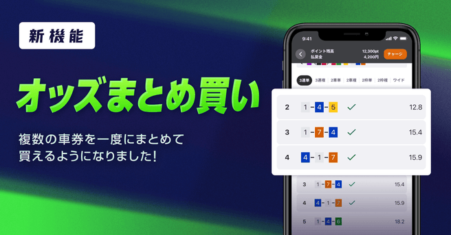 2023年11月14日(火)より順次、オッズまとめ買い機能をリリースすることをお知らせします。
