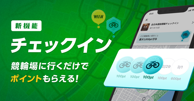 【新機能】競輪場に行くだけでポイントがもらえるチェックイン機能
