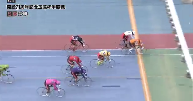 S級S班が3人勝ち上がり、人気が割れた決勝戦。打鐘前、小川真太郎(徳島)が踏み出して中四国勢が主導権を握る。最終周回で松浦が捲りに出ると、最終バックストレッチで古性優作(大阪)も発進。最後の直線、古性の番手から山田が冷静に差し切った。