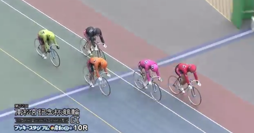 諸橋愛(新潟)と眞杉匠(栃木)の関東勢が人気を集めた10R。赤版周回、踏み出した眞杉が外帯線内に進入した際に接触した松井宏佑(神奈川)が落車。それに巻き込まれる形で人気の諸橋と和田健太郎(千葉)、佐藤友和(岩手)が相次いで落車してしまうアクシデントが発生。レースは眞杉が押し切り1着で入線したものの、外帯線内進入により失格に。眞杉のマークにつく形になった中村が繰り上がりで勝利を飾った。