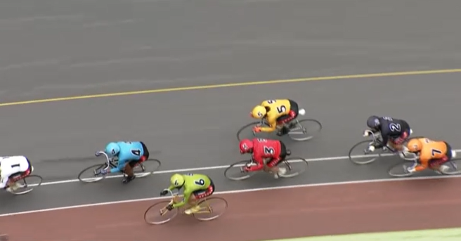 赤版周回で望月一成(静岡)が先頭に立ち、主導権を握る。最終周回、人気の山崎が5番手から捲って最終バックストレッチで先頭を捉えると、そのまま捲り切って準決勝進出を決めた。