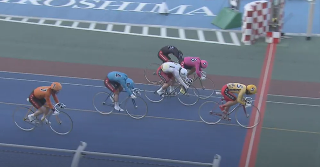地元のエース・松浦に人気が集まった初日の目玉レース。打鐘とともに野原雅也(福井)が踏み出し、主導権を握る。最終ホームで松浦が発進すると、接触した守澤太志(秋田)が落車。それに巻き込まれて芦澤大輔(茨城)も転倒してしまうアクシデントが発生。接触したものの松浦がそのまま先頭を捕らえ、人気に応えた。