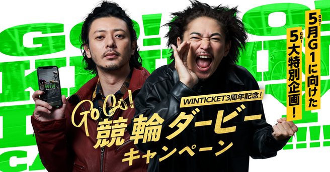 ウィンチケットでは、※5月の日本選手権競輪(G1)、通称「競輪ダービー」に向けて、より一層競輪を楽しんでいただきたく、4月〜「GO!GO!競輪ダービーキャンペーン」を開始します。