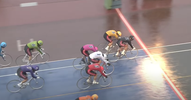 地元・吉本卓仁(福岡)に期待が集まった最後の準決勝。打鐘とともに朝倉智仁(茨城)が踏み出し、主導権を握る。最終2コーナーで林大悟(福岡)が発進するも、晝田宗一郎(岡山)ともがき合う展開に。後方のもつれもあり、朝倉のスピードに乗った岡田が差し切った。