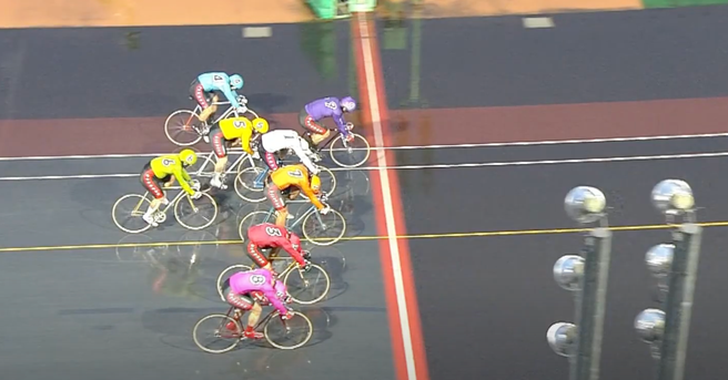 地元の西村光太(三重)と皿屋豊(三重)に期待が集まった最後の準決勝。打鐘前で皿屋が踏み出し主導権を握ると、1本棒の状態でレースが進む。最終バックストレッチで中井太祐(奈良)と松坂洋平(神奈川)が発進。その動きを察し、最後の直線で中部の3番手から踏み出した笠松が差し切った。