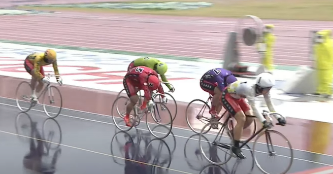 S級S班の脇本と松浦悠士(広島)が人気を二分した初日の目玉レース。打鐘とともに犬伏湧也(徳島)が踏み出し、主導権を握ると1本棒の状態でレースが進む。最終バックストレッチで新田祐大(福島)が捲りに出ると、脇本も8番手から発進。そのまま大外から捲り切った。