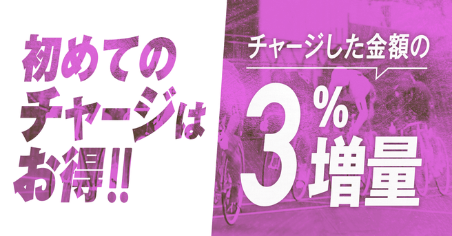 WINTICKETに新規登録したお客様が、登録日及びその翌日・翌々日・翌々々日の期間内にチャージした場合、初回チャージ金額の3%がポイントとして付与されます。